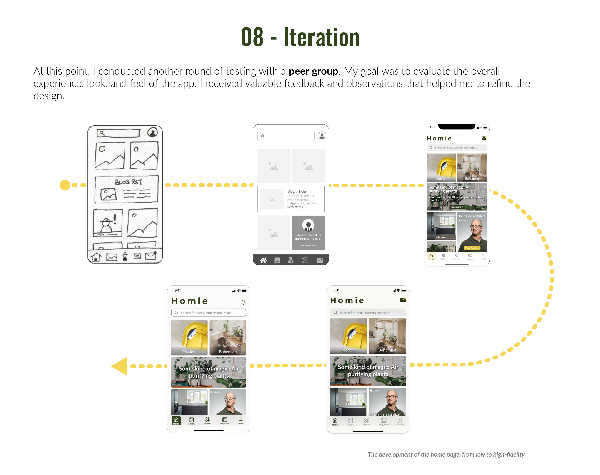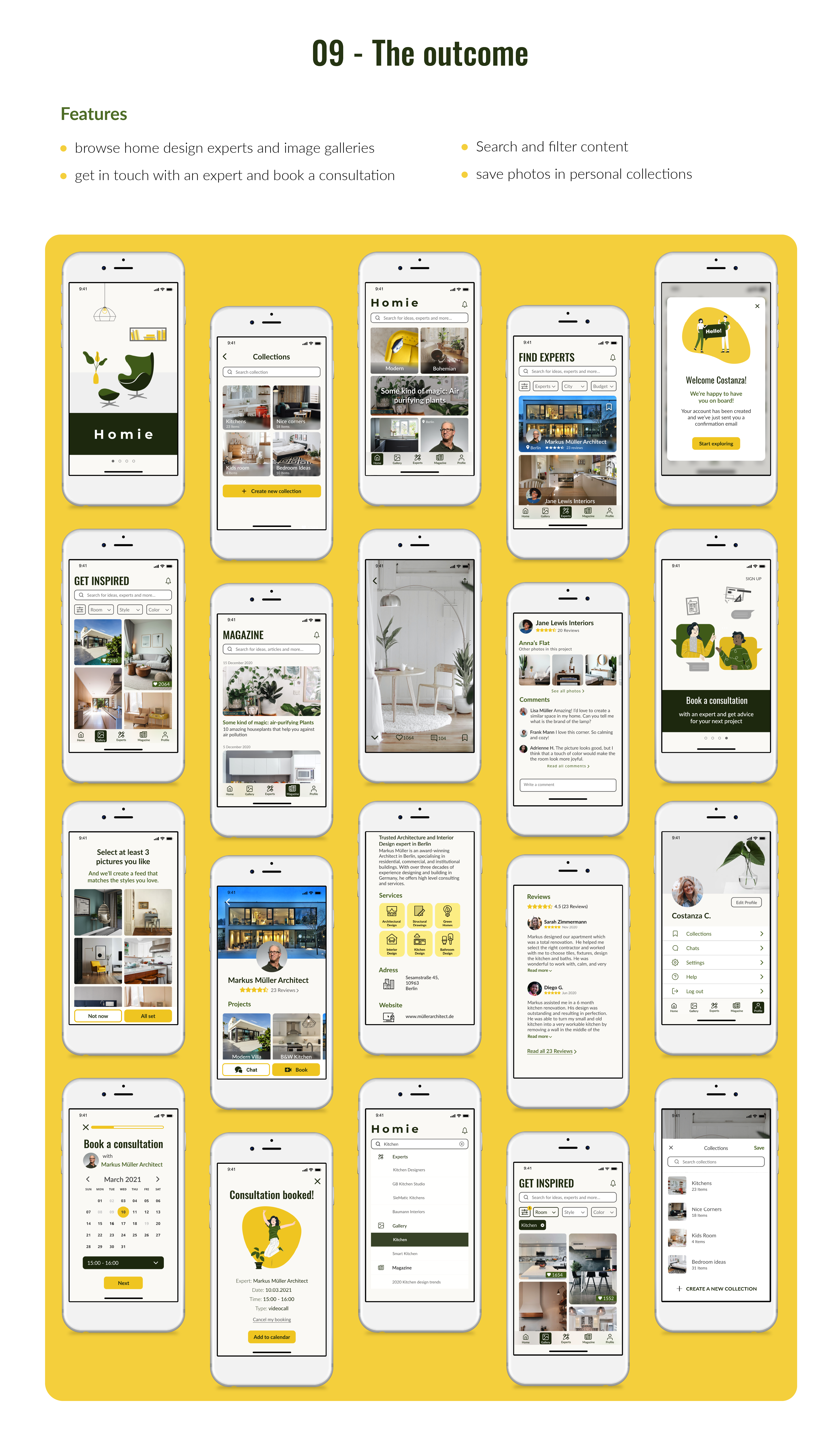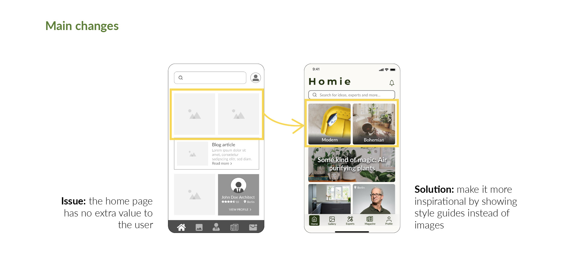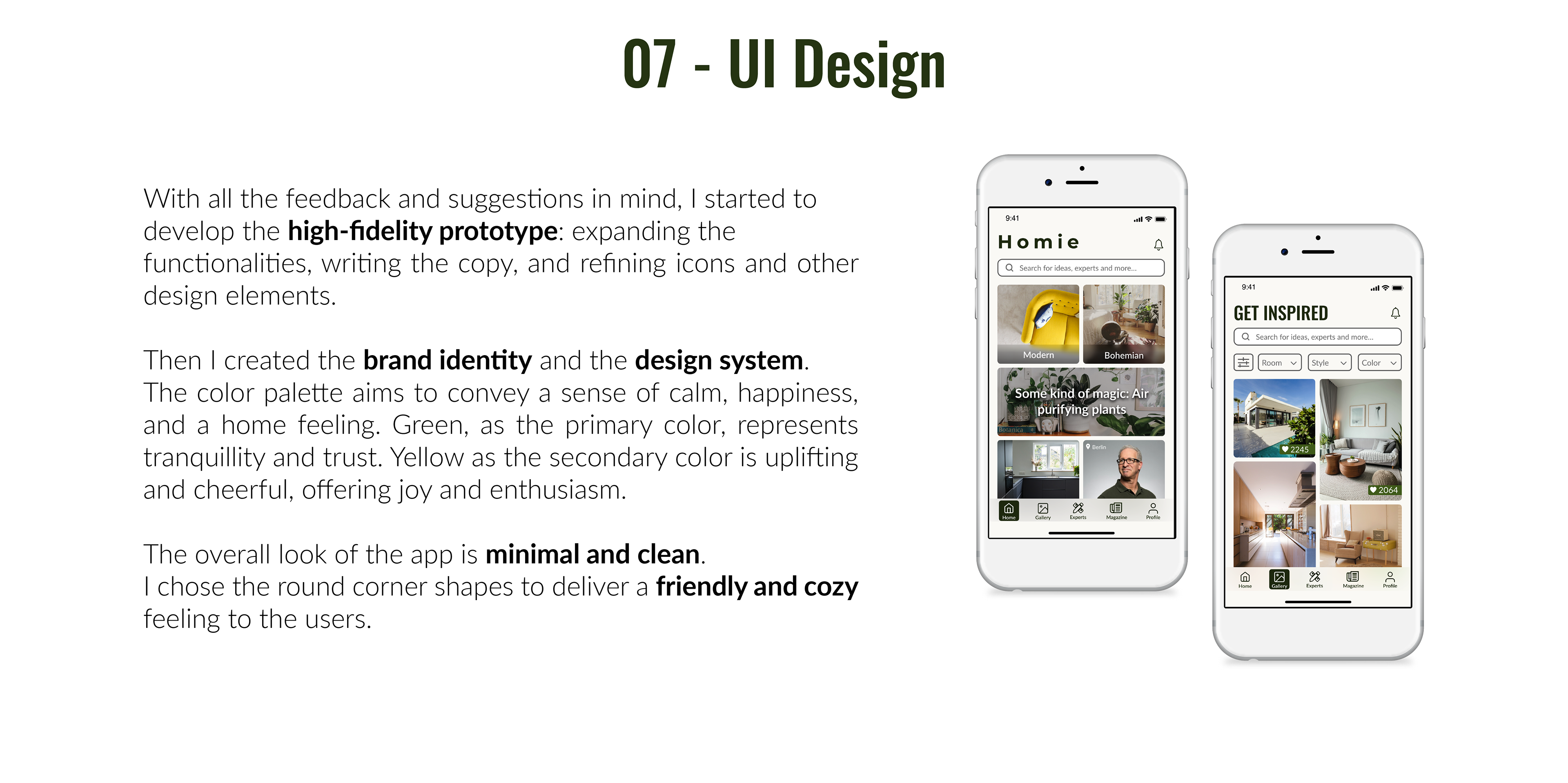 UX Design case study. Homie is a home design web app created to help anyone who wants to start a a renovation to find the right expert in their city. The app also aims to inspire its users through a vast photo gallery and a magazine section.