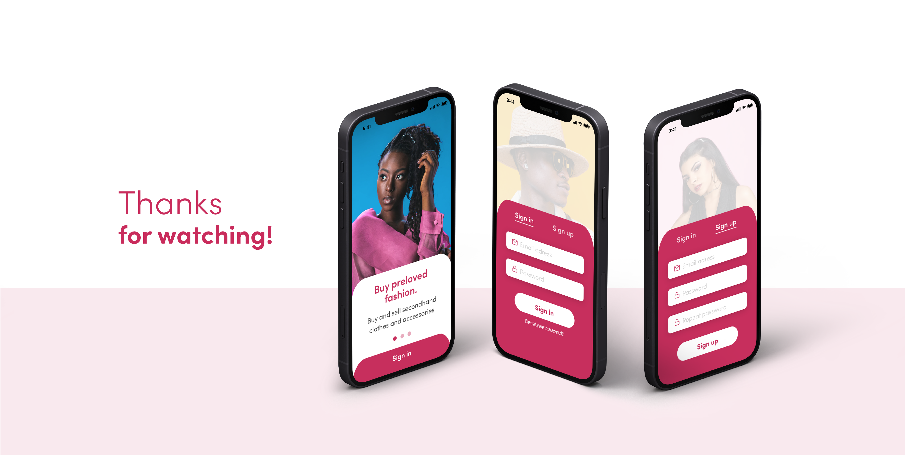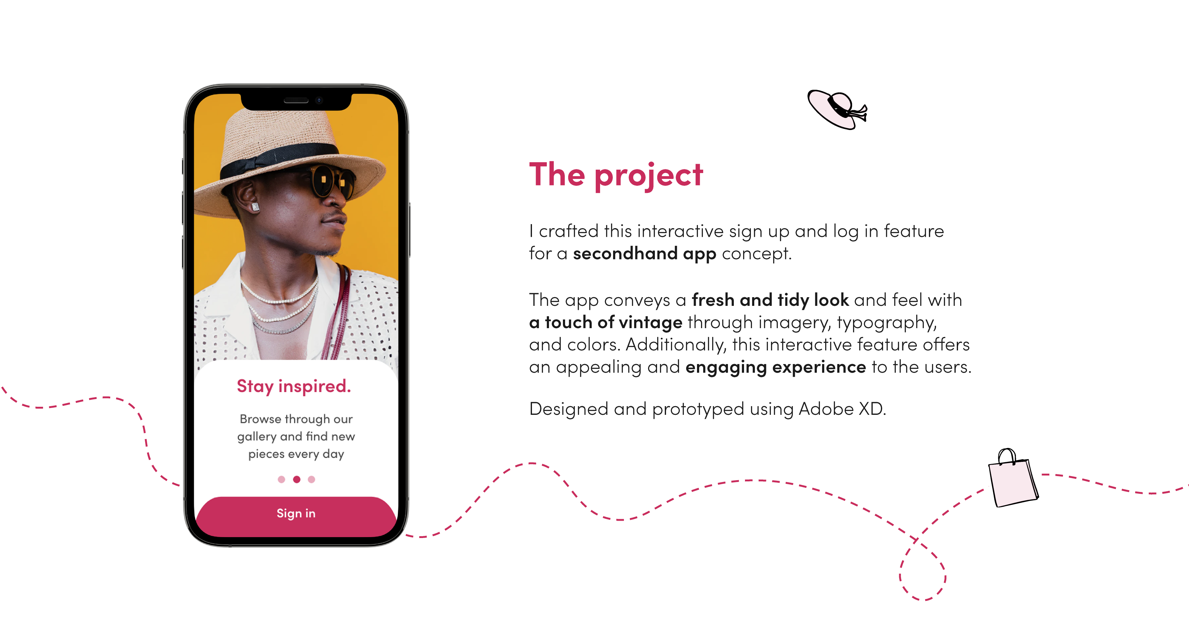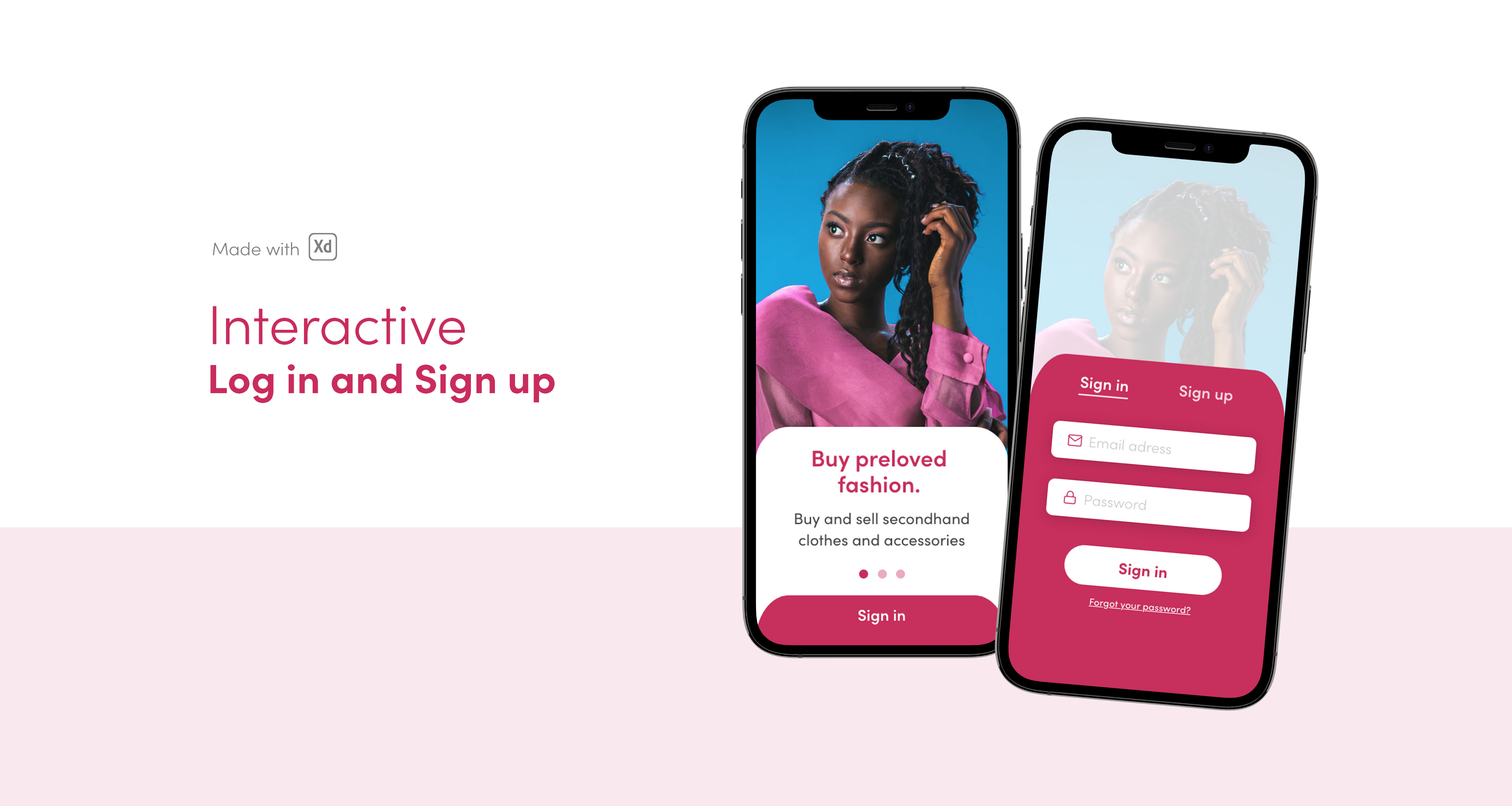 Interactive sign-up and log-in feature for a secondhand app concept.